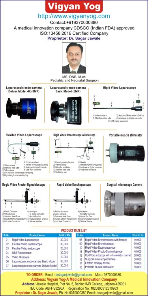 Dr. Sagar Jawale has commercialised more than 25 of his inventions which are 20 times cheaper than peers. It includes “Chip on Tip” medical endoscopes. His Vigyan Yog company has the prestigious MDR license from Indian FDA with CDSCO approval for 17 biomedical devises. It also has ISO 13485: 2016 certificate for quality management.